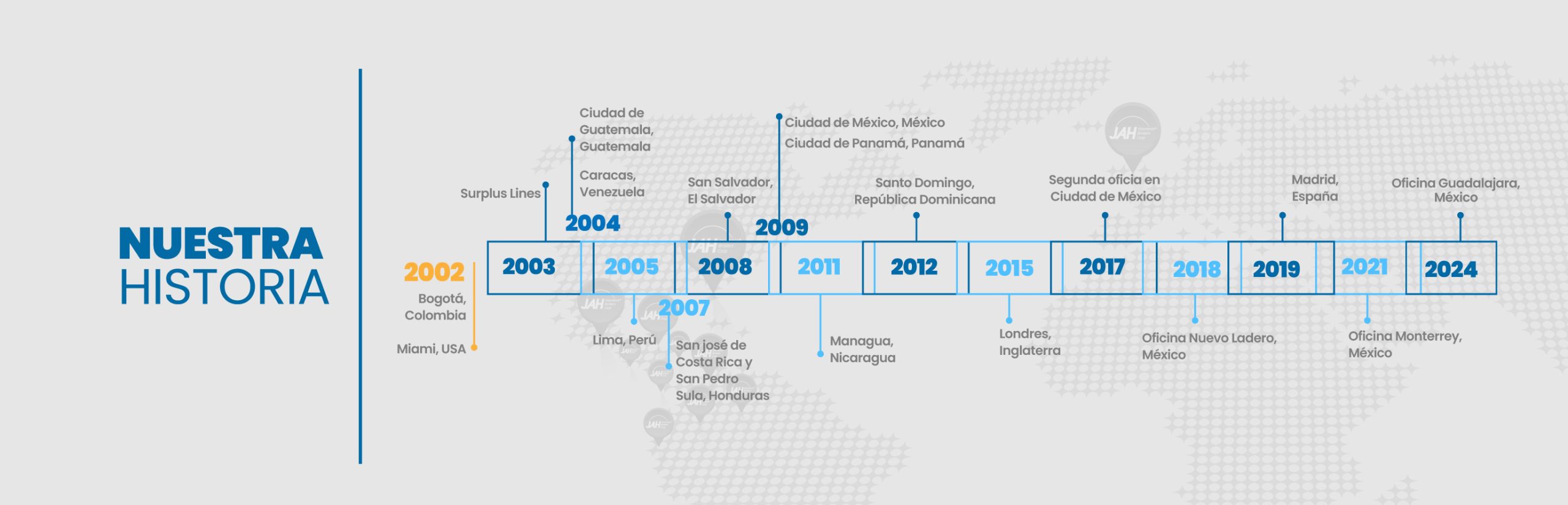 JAH Company Services SAS provides advisory services in the underwriting, administration and claiming of cargo insurance and insurance for the logistics sector. Through strategic alliances with national and international insurance companies specialized in cargo and logistics insurance, it provides administrative and commercial support to guarantee timely and accurate attention to its clients.